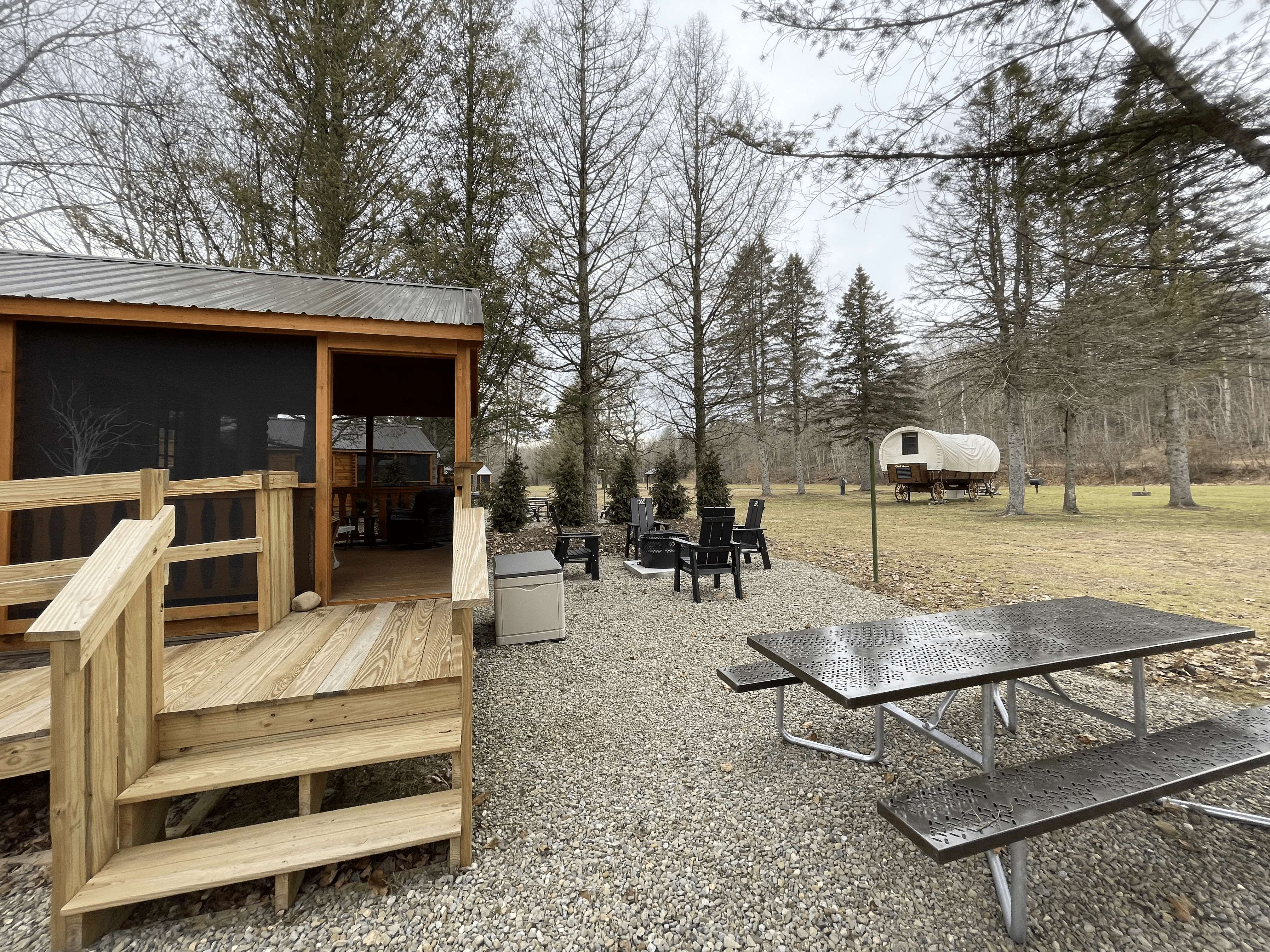 - Private outdoor seating area with Adirondack chairs, fire pit, deluxe smoker grill, lantern and lantern holder